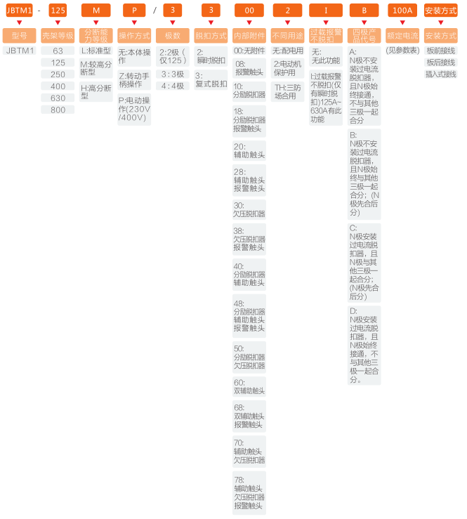JBTM1-125分為:16A、20A、25A、32A、40A、50A、63A、80A、100A、125A;