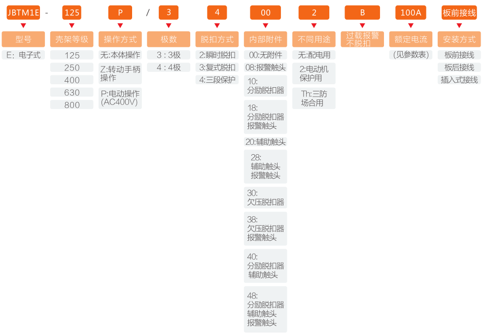 JBTM1E-125分為:50A、63A、80A、100A、125A;